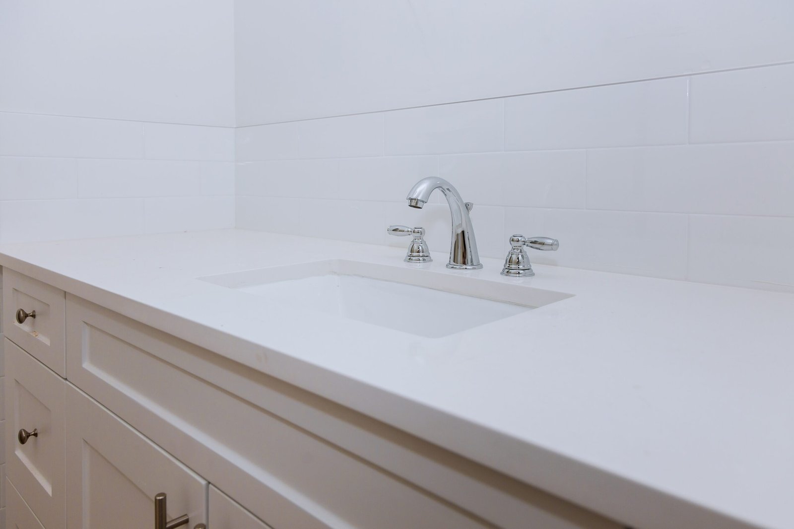 Beautifully Decorated New Modern Home Bathroom Sink, Faucet and Counter.