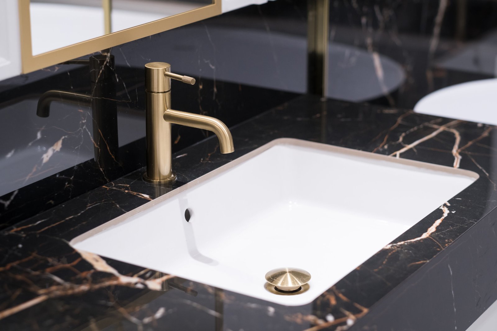 close-up view of two luxury sinks in bathroom