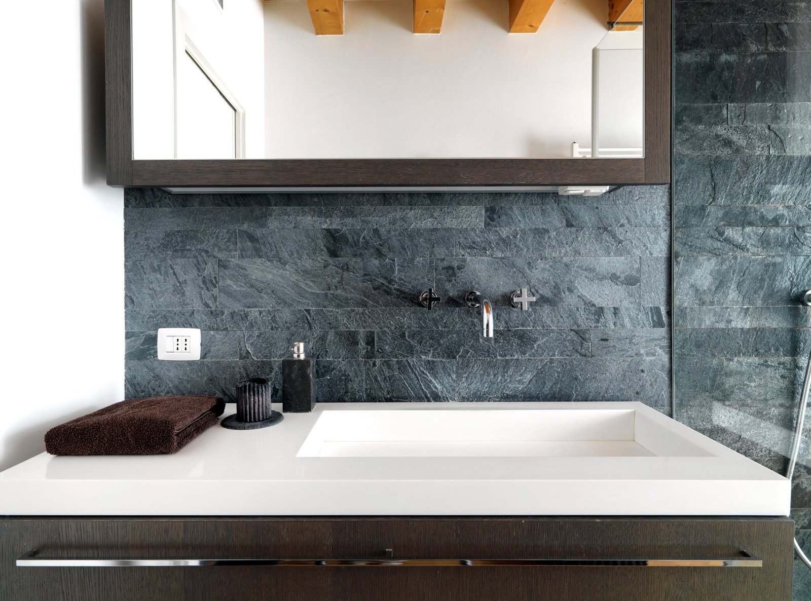 Bathroom elegant interior with sink and faucet.